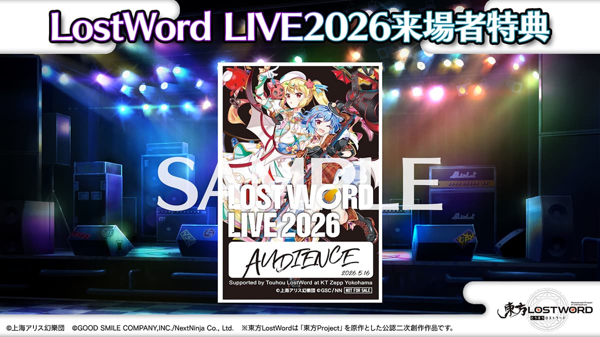 株式会社グッドスマイルカンパニーと株式会社NextNinjaの共同プロジェクトである、東方Project公認二次創作スマートフォン向けRPG『東方LostWord(とうほうロストワード)』が5月16日(土)にKT Zepp Yokohamaにて開催する『LostWord LIVE 2026』のチケットがe+(イープラス)にて3月1日より販売を開始いたしましたことをお知らせいたします。