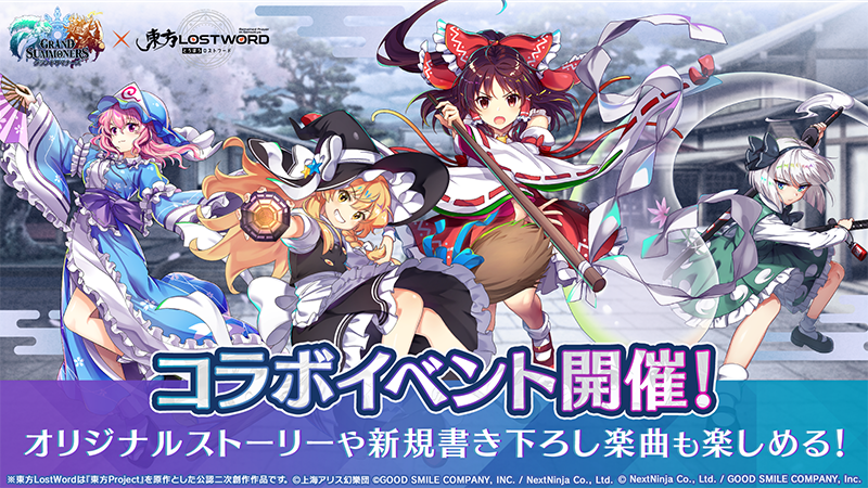 超本格王道RPG『グランドサマナーズ』(配信・開発「株式会社 NextNinja」配信協力「株式会社グッドスマイルカンパニー」)は、本日3/11メンテナンス終了後より、東方Projectを原作とした公認二次創作RPG『東方LostWord』とのコラボイベント前編を開始いたします。