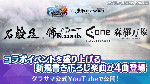 今回のコラボイベントのために新規に書き下ろされた楽曲が4曲登場! それぞれの楽曲は、コラボイベントに登場する東方LostWordのキャラクターのテーマ曲になっています。